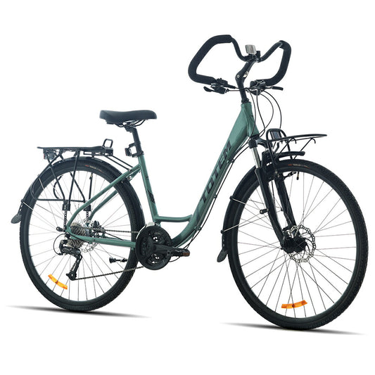 Totem自転車 MST シティサイクル 700C シマノ製18段変速 SHIMANO CUES 楽に走れる マルチポジション(バタフライ) トレッキングハンドル アルミニウム合金6061 T6 ママチャリ サスペンション 油圧式ディスクブレーキ 迎え 送迎 通勤 通学 街乗り 買い出し 送料無料