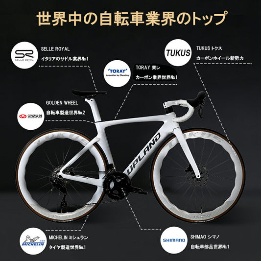 Uplandロードバイク R70 700c×25c shimano105 R7120機械式24段変速 重さわずか8.36kg 東レカーボン ミシュランタイヤ shimano油圧ディスクブレーキ ロードレーサー ロードレース シマノ shimano アウトドア スポーツ 自転車 ギフト プレゼント 送料無料 UPLAND